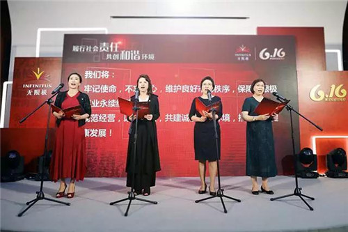 启动仪式上,四名无限极(中国)业务咨询委员成员:首席业务总监刘莉女士、李先芳女士,高级业务总监王春洁女士、李萍女士代表无限极的全体业务伙伴上台宣誓,表态将培养规范意识,营造和谐氛围,树立规范形象,维护消费者合法权益,共同推动行业健康发展。