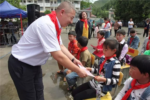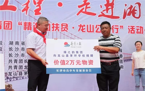 胡均安副总经理代表绿之韵集团向龙山县茅坪学校捐赠物资