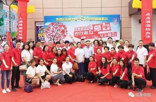 6月14日,上海市举行“纪念第十四个世界献血者日”表彰活动。完美上海分公司荣获国家卫计委、中国红十字会颁发的全国无偿献血最高表彰——“全国无偿献血促进奖”。此前,上海分公司已获得“全国无偿献血促进奖特别奖”等重要奖项。