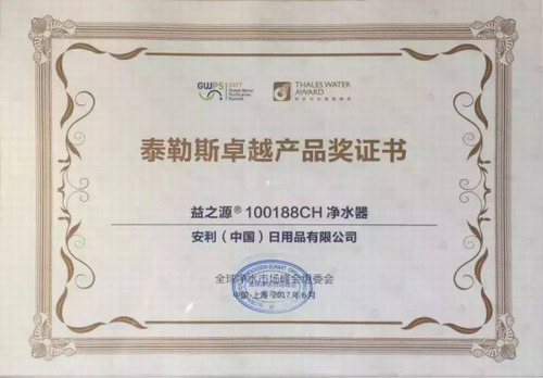 泰勒斯是古希腊时期的思想爱、科学家、哲学家,他让人们认识到“万物都是从水中来”的重要性,而GWPS净水器行业泰勒斯奖是以表现智慧与思想的延伸,技术进步与创新的发展,旨在表彰为净水行业做出贡献的优异产品。