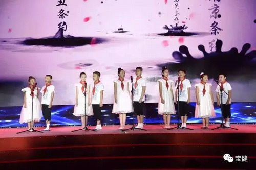 宝健希望小学的孩子表演诗朗诵—少年中国说
