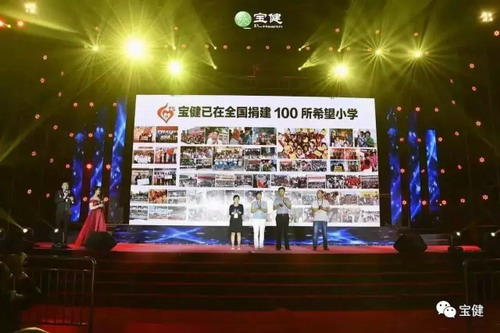 截至目前,宝健各类捐赠额近2亿元,捐赠100所希望小学和农民工子弟学校。其中鲁冀地区已经捐建了8所希望小学,今年预计还要再捐建2所希望小学。