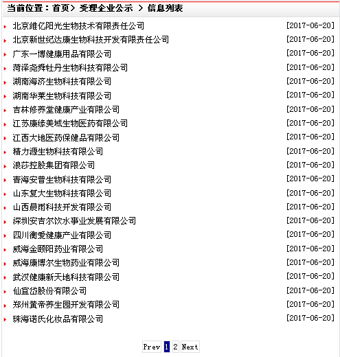 其中,北京维亿阳光生物技术有限责任公司、郑州黄帝养生园开发有限公司、深圳安吉尔饮水事业发展有限公司等14家企业作为“申牌企业”(商务部网站进行过改版 将“企业申请直销声明”栏变更为“受理企业公示”栏)出现在商务部网站曾经的版本中过,而广东一博健康用品有限公司、菏泽尧舜牡丹生物科技有限公司、吉林修养堂健康产业有限公司、江苏康缘美域生物医药有限公司、精力源生物科技有限公司、浪莎控股集团有限公司、武汉健康新天地科技有限公司、仙宜岱股份有限公司等8家企业则是首次亮相于商务部网站。