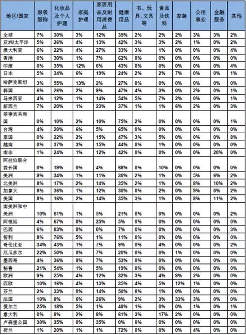 二、按产品类别分析2016全球直销行业各地区/国家的零售情况