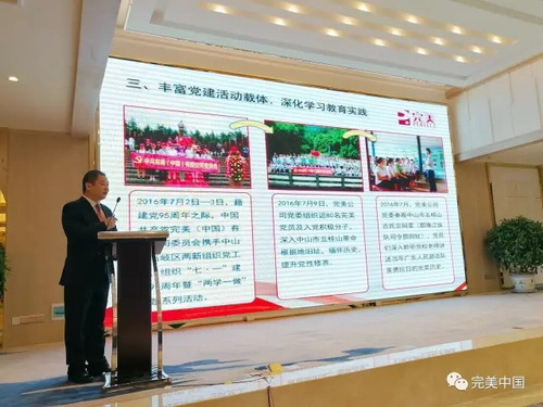 作为中国明星侨资企业、非公有制经济企业的一员,完美公司积极响应国家在企业开展非公党建工作的号召,从2003年成立党支部到2014年升格为党委,从鼓励员工学习先进到塑造优良团队,从因地制宜开展社区志愿服务到形成慈善公益体系回馈社会,从毅然选择回归故里兴办实业到弘扬中华优秀文化……在企业经济效益稳步增长的同时,完美公司结合侨资企业的优势和特点,创新工作思路、改进工作方法、创建活动载体,形成了党建工作与企业发展目标同向、成果共享的长效机制,探索和迈向党群同频共振、党企和谐共赢的道路。