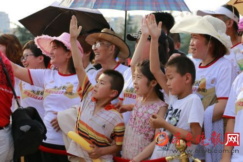 专家指出,正确的行走可增强心肺功能,改善血液循环,促进消化,保持良好体形,强化记忆力,解忧排压。活动开始前,万步荟行走达人现场教习5种科学行走姿势,参与者们纷纷效仿。他们统一身着养生行走日运动T恤,挥舞着健康小旗帜,喊着“每天行走一万步,健康人生无限极”的口号,让整个行走队伍的气氛相当热烈,现场瞬间化为白色与红色交汇的海洋。