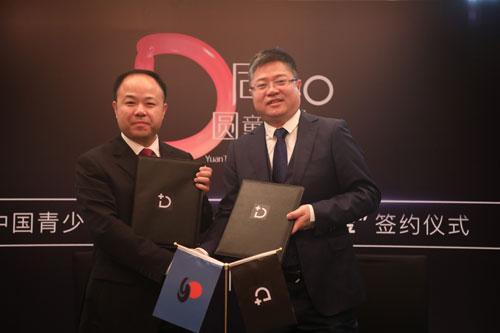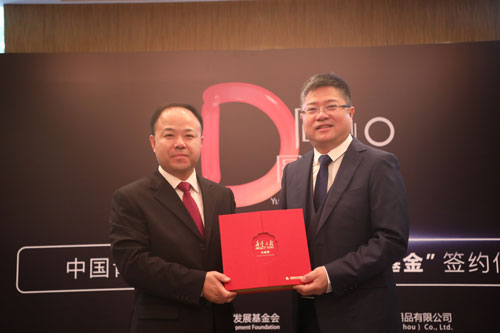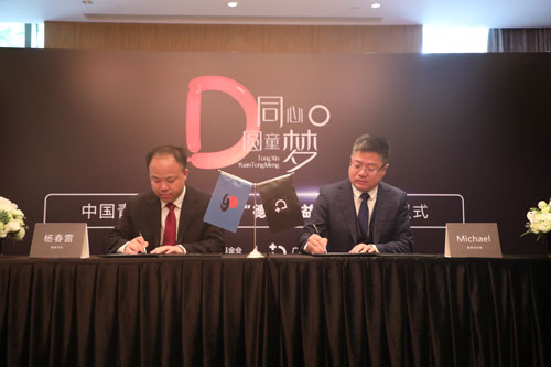 中国青基会副秘书长杨春雷(左)与德家董事Michael(右)签约成立德家公益基金