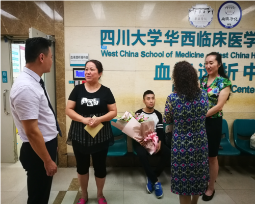 今天上午,从潘女士那里得知曲拉一家的情况后,同为全国人大代表的好医生药业集团董事长耿福能立即指示公司领导去医院慰问患者。 福能源生物科技有限公司执行总裁廖磊和常务副总裁尤艳代表董事长耿福能和福能源总经理耿越昌为曲拉一家送去了他们个人和公司的一份心意,并祝福曲拉早日战胜疾病,早日回到他日记中时常谈及的儿时伙伴和学生时代的朋友中去。