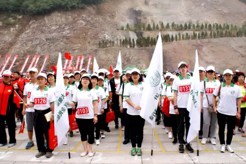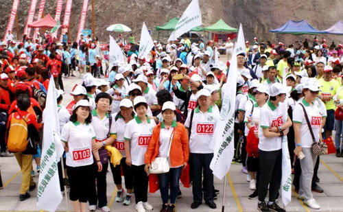 行,是一种姿态。行,是一种动势。行,是一种前进的力量,更是一种健康的生活方式。6月23日,在大健康中国行志愿者李瑞林女士、贾吉爱女士、贾俊花女士、郝雅玲女士的带领下,近150名大健康中国行志愿者相聚红崖峡谷景区,与来自山西省内各地的800余名热爱生活、崇尚健康的人士共同参加2017年首届“醉美红崖”杯徒步健行赛,在领略大美风光的同时,共同感受运动的激情和快乐。