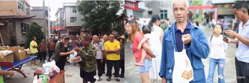 上午十点左右,东风村一百多位贫困户背着背篓、推着手推车,纷纷拿来土鸡蛋、蔬菜干、黄豆等土特产品,浩浩荡荡地向村里的农产品收购中心走来。现在让我们回顾一下热闹的场面。