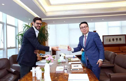 徐建成董事长与亚历山大总裁共同展示SEALUXE海之恒妍安瓶