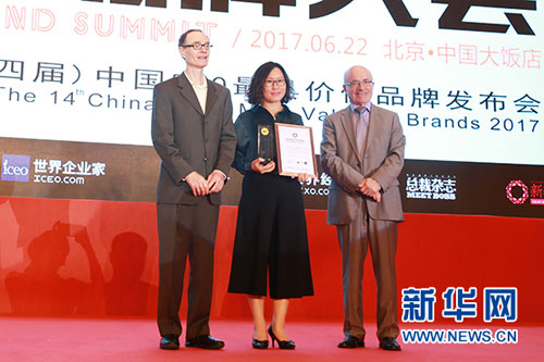 东阿阿胶股份有限公司品牌建设部部长王凤玲(中)上台领奖 新华网 宫晓倩摄
