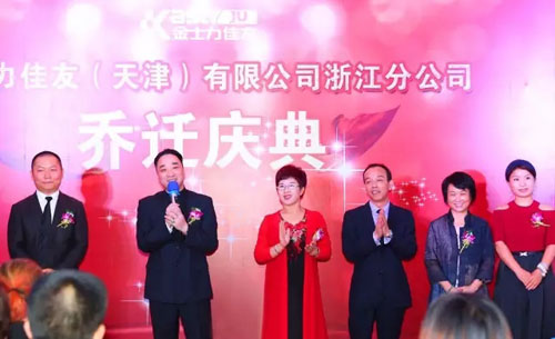 6月24日,金士力浙江分公司隆重举行了乔迁庆典,拉开浙江市场发展的新征程。活动现场,金士力副总经理胡英杰协同浙江分公司经理方玉泉及绩优经销商代表徐鸣、李勇、张丽娟、荣华一同为金士力浙江分公司乔迁进行点睛仪式,共同送上祝福,并表示公司对华东市场未来的发展信心满怀。方玉泉在致辞中表示:浙江分公司的成功组建和正式运营,是实现公司2017年战略目标的重大举措之一,是金士力浙江市场事业发展中的重要一步。分公司将为浙江省及周边地区经销商提供最优质、文明、快捷的服务,同时欢迎全国各地的伙伴来浙江开拓市场。