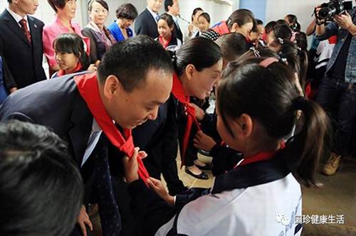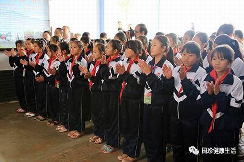 落成仪式上,少先队员代表为与会领导和嘉宾佩戴了鲜艳的红领巾。云南省弥勒市教育局局长卢正坪首先致辞,希望更多人以新时代健康产业集团为榜样,充分发掘自身优势,踊跃投身希望工程,为贫困地区教育事业贡献一份力量。