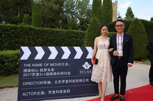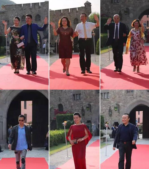 北京罗麦科技有限公司领导、高级经销商委员会副秘书长及戛纳市副市长等人步入红毯合影留念