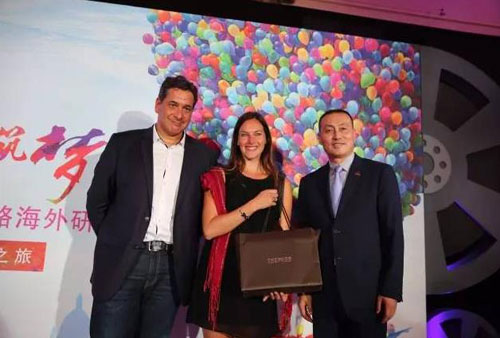付总向戛纳市负责贸易旅游、对外关系发展的副市长Mr. Frank CHIKLI-先生及戛纳旅游局全球高级销售经理Ms.Charlotte 女士赠送仙肤莱产品。