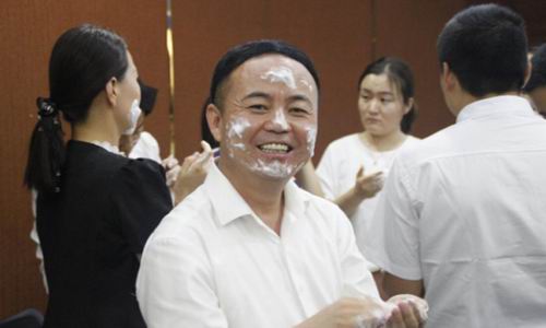 这位可爱的大哥,丰富的泡沫,从未有过的洗脸体验让他笑得合不拢嘴