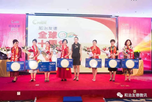 四川分公司经理穆岚女士为和+国际养生馆优秀店主颁奖