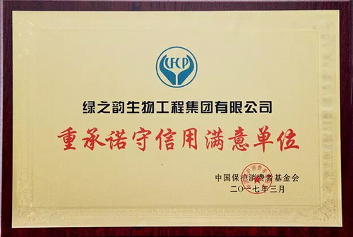绿之韵集团被中国保护消费者基金会评为“重承诺守信用满意单位”