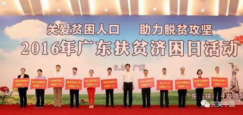 2016年广东扶贫济困日活动中,完美公司捐赠善款1000万元