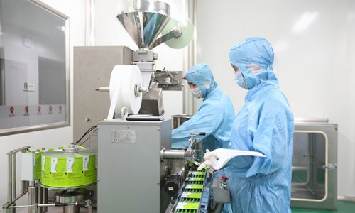 同时,生产线还对不同产品进行分类生产。比如,茶剂类产品,经过层层处理的药剂将被转运到茶剂内包间,进行无菌封装处理。