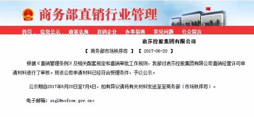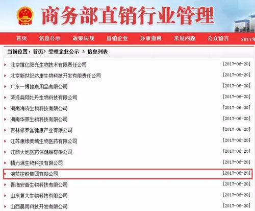 6月20日,商务部网站对外公示了20多家最新受理企业名单,其中号称中国袜业第一品牌的浪莎控股集团有限公司(以下简称浪莎)也出现在名单内,引起了业内不少关注。而近日,直销道道网也从知情人处获悉,浪莎集团面临许多问题,力求转型寻找出路,目前正在积极申牌当中,直销产品、奖金制度等都已在筹备当中。