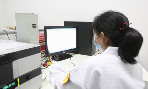 紧接着我们来到了实验室。技术人员正细致地对产品进行酸碱度检测,由于产品用于人体皮肤表面,所以酸碱度测试在日常检测中占非常重要的地位。