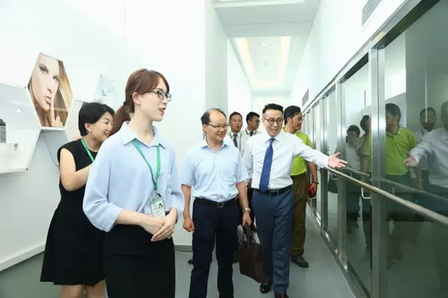 本次调研团的主要领导有:江苏省工商局公平交易监督局副局长马毅、江苏省工商局公平交易监督局科长征军等。在绿叶科技集团董事长徐建成、绿叶科技集团高级副总裁韩静的陪同下,调研团一行先后参观了绿叶科技集团生产制造中心、企业文化厅、产品展示厅和行政办公区等处。马毅副局长详细询问并听取了绿叶有关企业发展、科技创新、品牌战略、模式创新等方面的工作情况,对绿叶优秀的企业形象、国际化的生产制造水平、高品质的产品和全新的模式给予了高度评价。