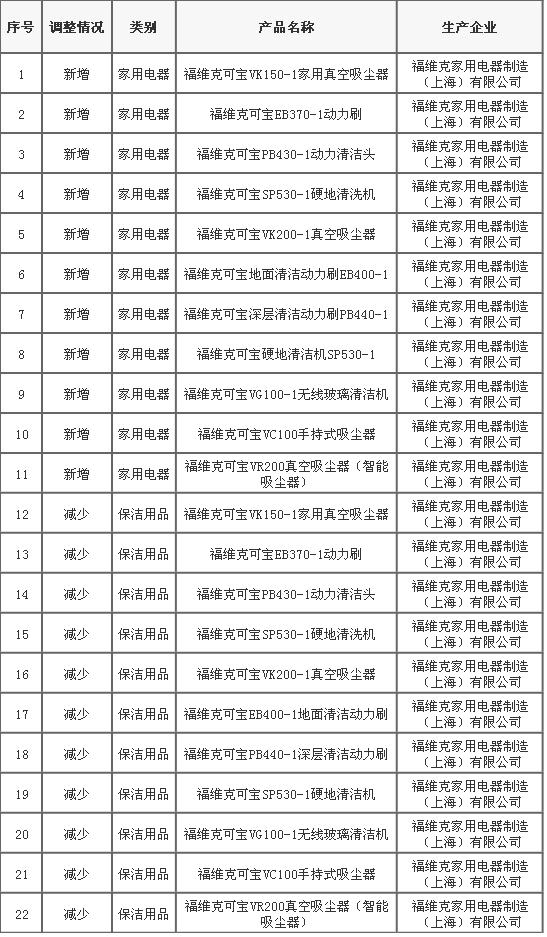 2017年7月14日,商务部直销行业管理信息系统网站公示福维克家用电器制造(上海)有限公司调整直销产品信息。福维克此次新增家用电器11款,减少保洁用品11款,详细信息如下: