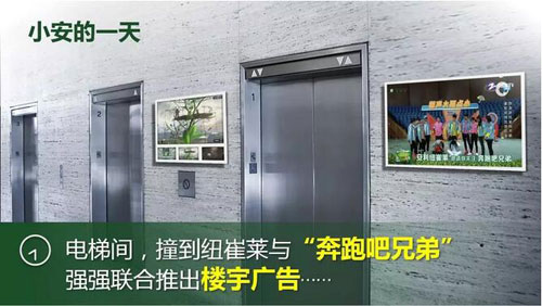 ✦纽崔莱与《奔跑吧兄弟》联袂推出的楼宇电梯广告。