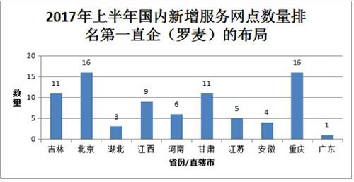 图6 2017年上半年国内新增服务网点数量排名第一直企(罗麦)的布局