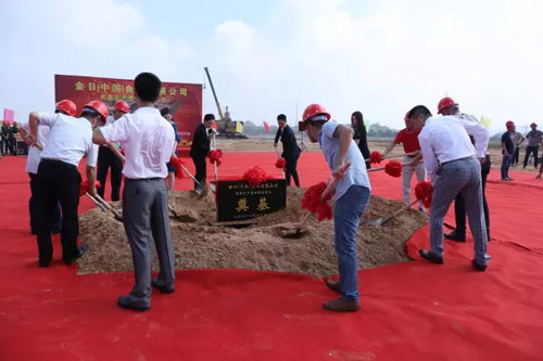 随着礼炮响起,金日集团副董事长李冠嘉和总裁李冠华等12位领导一同挥动铲锹,为项目进行培土奠基,宣告项目正式开工。