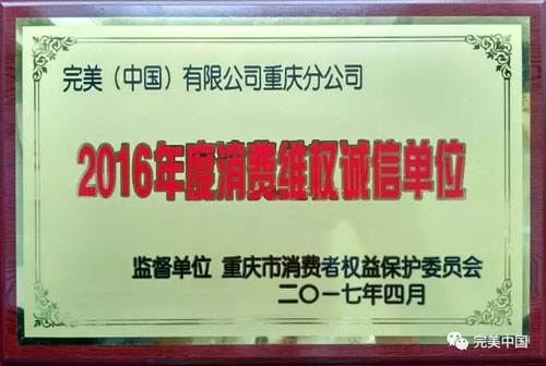 完美连续8年获评重庆“消费维权诚信单位”