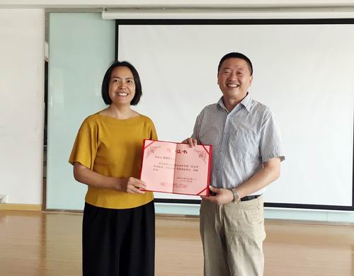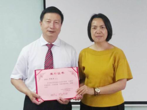 ▲孙小玲总经理为上半年表现出色的市场领导人颁发荣誉证书。