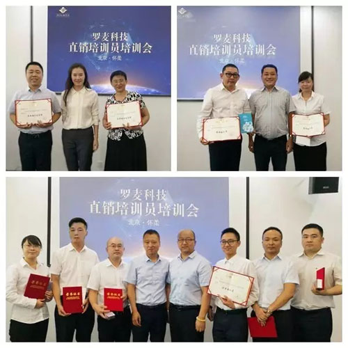 培训中评选出6名优秀直销培训员,分别是:重庆分公司李江川、重庆分公司贾文春、山西分公司崔维、甘肃分公司丁晓花、辽宁分公司张勋、吉林分公司黄山;最佳直销培训员两名:江苏分公司吴剑、浙江分公司陈娟。北京罗麦科技有限公司副总裁白云先生、分管部总监杨庆明先生、市场总监张欣磊先生分别为以上直销培训员颁发了证书和奖品。