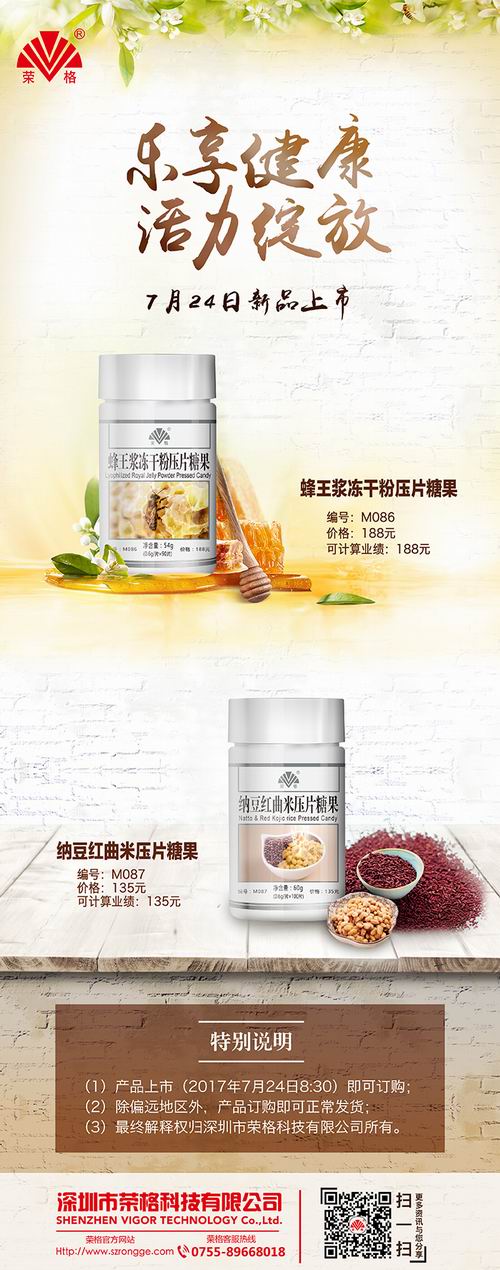 荣格蜂王浆冻干粉压片糖果等两款新品上市