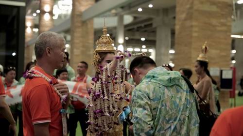 随后,坐上挂满圣原旗的专属快艇上,直达攀牙湾,这里是普吉最负盛名的景点之一。呈淡绿色的海湾水面上,石灰岩奇峰怪石星罗棋布,山峰耸峙,海景如画,泛舟海上的圣原家人们2人一组,纷纷拿出手机……