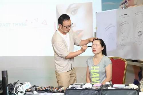 化妆导师李宁在教授化妆技巧