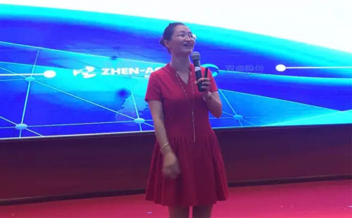 兆和商学院高级领导人孙元方作产品知识讲解,她讲道“双迪围绕‘吃、喝、睡、养、吸’——人类最基本的健康需求,为用户提供保健食品、营养食品和调味品、化妆品、器械产品、健康睡眠系统、基因检测等六大系列 300 多种产品,融入了双迪人‘孝心、爱心、实心、仁心、恒心’这五心配方的产品为家人们送去了健康和长寿。”