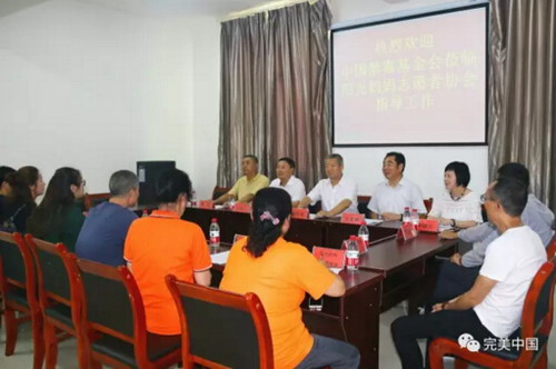 7月21日下午,中国禁毒基金会理事长杨凤瑞、名誉理事王静波一行来到贵阳市花溪区阳光社区,与“阳光妈妈”志愿者协会开展禁毒调研工作并座谈。贵州省禁毒总队副总队长雷平,禁毒基金会副理事长文发祥、秘书长田海清,完美贵州分公司总经理李晓兰等陪同出席禁毒宣传调研活动。
