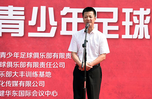 权健集团董事长、天津权健足球俱乐部总经理束昱辉发言