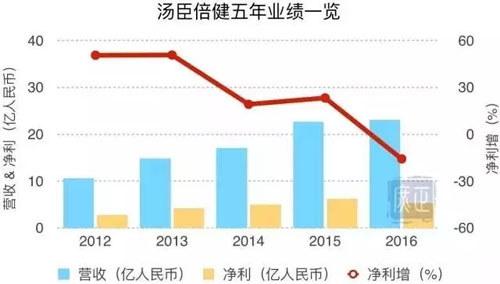 汤臣倍健上市以来一直保持着高速增长,但在2016年净利润增长率出现首次下跌。2016年底开始实施的新战略初见成效,上半年净利润增速回复至较高水平。