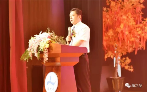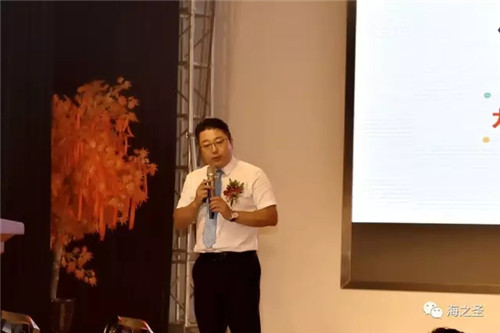 欢腾地开场阶段过后,会场的热情持续高涨。海之圣深耕海洋,每次震撼业界的声音即是大海的汹涌,掌声雷动之后,海之圣副董事长王元正先生登台开场致辞。王总对参会的家人表示欢迎,并由衷地祝愿事业美好前程似锦,并祝贺溯然本色化妆品系列今日面世。