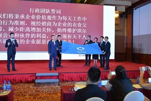 会议伊始,董事长张连水先生为琪尔康家人们送上鼓励和祝福。董事长张连水先生在致辞中讲到:在琪尔康这个大家庭里,我们是一家人,琪尔康为家人们搭建前景无限的事业平台,提供高品质的产品、组建专业的服务团队,每年以倍数递增的投入助力琪尔康家人事业的拓展。正如我们的企业使命,“用爱传递美好生活”,让我们一起携手共进、砥砺前行,帮助您和每一位家人们实现美好生活,实现人生梦想,“琪天下人幸福安康”。