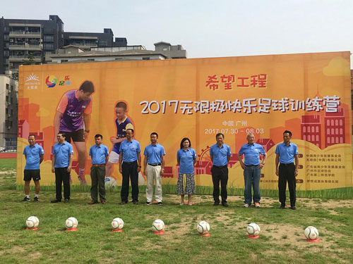 7月31日,2017无限极快乐足球训练营开营仪式在广东第二师范学院体育学院举行。广东省青基会副秘书长谢长仙、广州市足球协会副会长丁明、广东省足球协会监事长岳永荣以及来自广东第二师范学院、思利及人公益基金会、无限极(中国)有限公司的领导嘉宾出席开营仪式并致辞。
