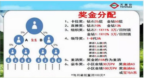 据悉,早在2016年9月底,天福天美仕最新模式就已经出台。继附加价值计划之后,股权成为模式新亮点,天福天美仕向经销商承诺,公司即将在美国纳斯达克上市,届时市值将达1000亿美金,而公司49%的股权会交与会员持有。