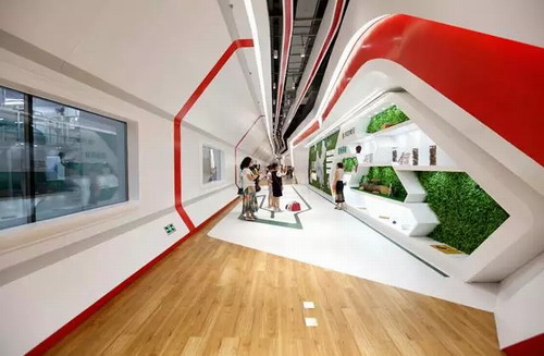 生产回廊以太空舱的未来感与科技感为设计灵感。在这里您将会了解到高品质中草药健康产品的生产过程。