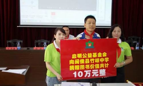 “启明公益万里行”走进福州市闽侯县,举行“中国航天启明图书室”捐书助学活动,向闽侯竹歧中学捐赠价值10万元的图书。