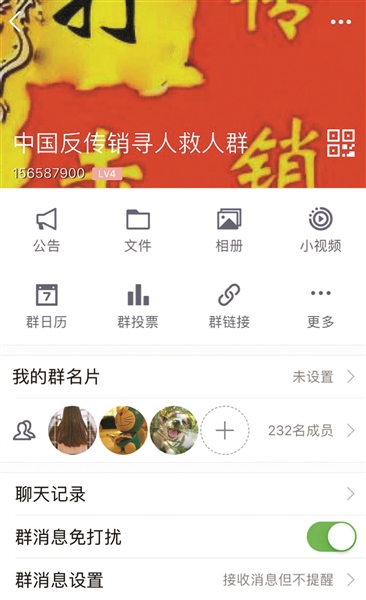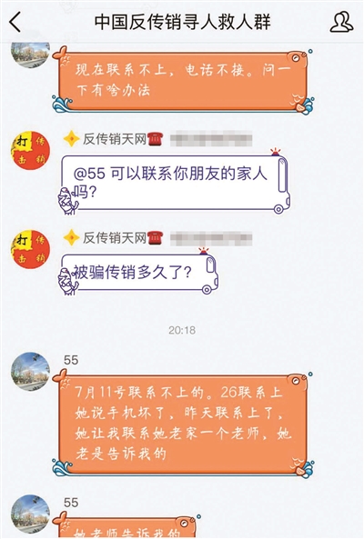 受害者家人在“反传销救人群”里求助。北京青年报 图