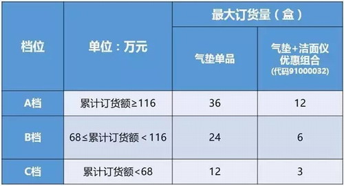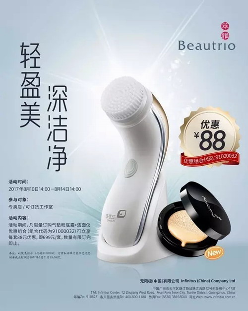 为助力市场推广,确保每家店铺都有销售新品的机会,公司在8月10日~8月14日举办“萃雅气垫粉底霜、萃雅气垫粉底霜+享优乐洁面仪优惠组合”限量订货。